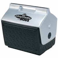 Diamond plate exterior features a rugged texture and appearance. Trademarked tent-shaped lid with a attractive metallic-look has the side button release that locks tightly to prevents spills. Lid swings open to either side for easy access. Molded-in handle for one-handed carrying. Great for lunch on the jobsite or for the do-it-yourselfer working around the house