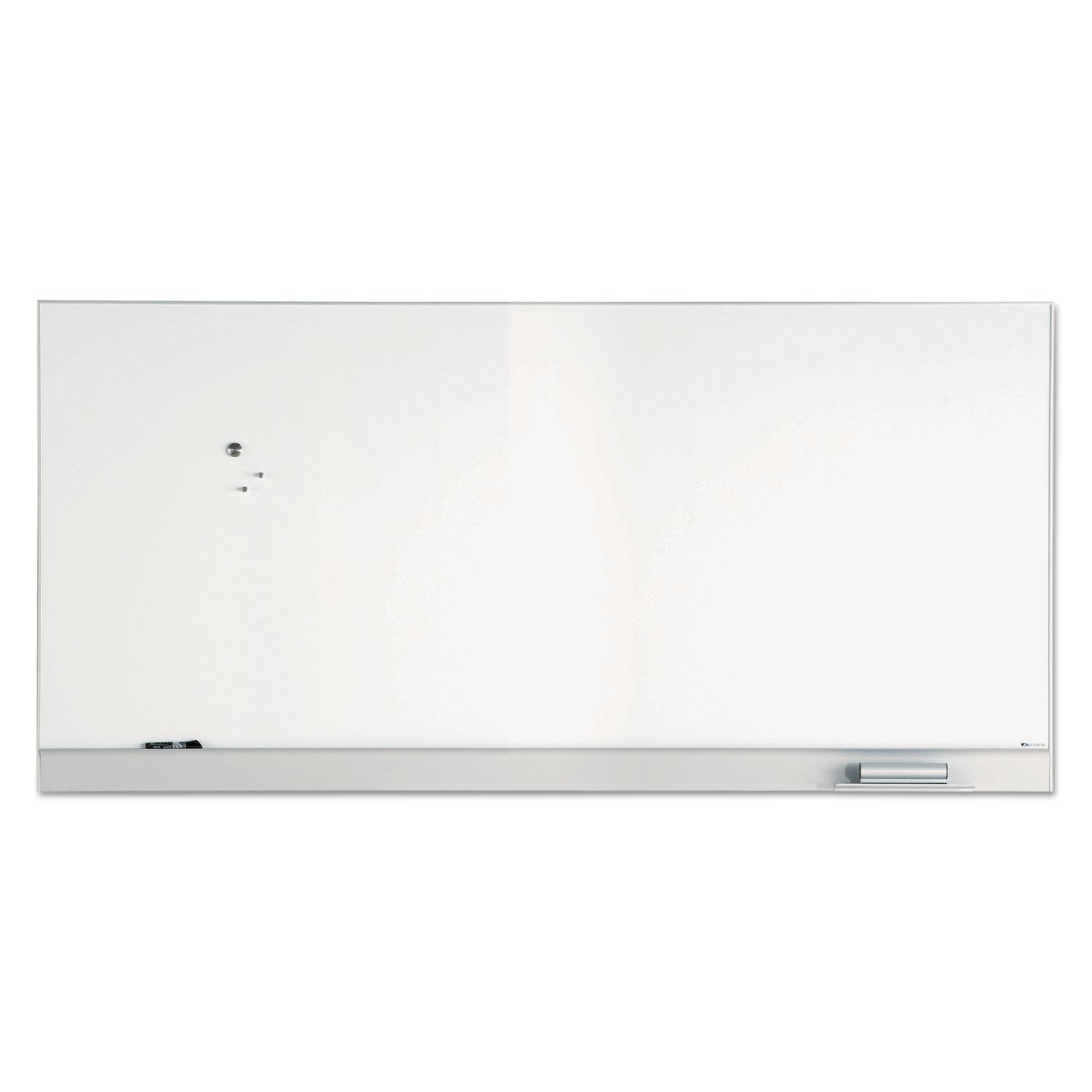 Bold, modern, modular aluminum frame design for flush side-by-side mounting. Superior coated steel surface resists ghosting and staining. Adjustable eraser tray, secure mounting channel built-in. Board Type: Magnetic Dry Erase; Board Width: 96"; Board Height: 46"; Surface Material: Enameled Steel.