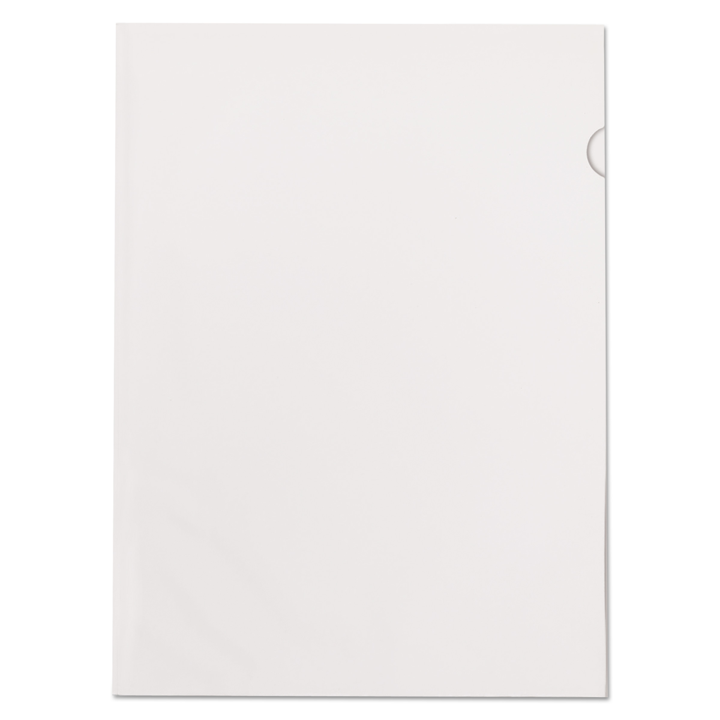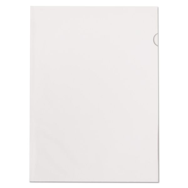 See-through folders provide quick and easy identification of contents. Thumb-notched for easy access; sealed on side and bottom for security. Durable, archival-safe poly protects against photocopy transfer and moisture. Textured surface. Number of Sections: 1; Tab Cut: Untabbed; Size: Letter; Punched/Unpunched: Unpunched.