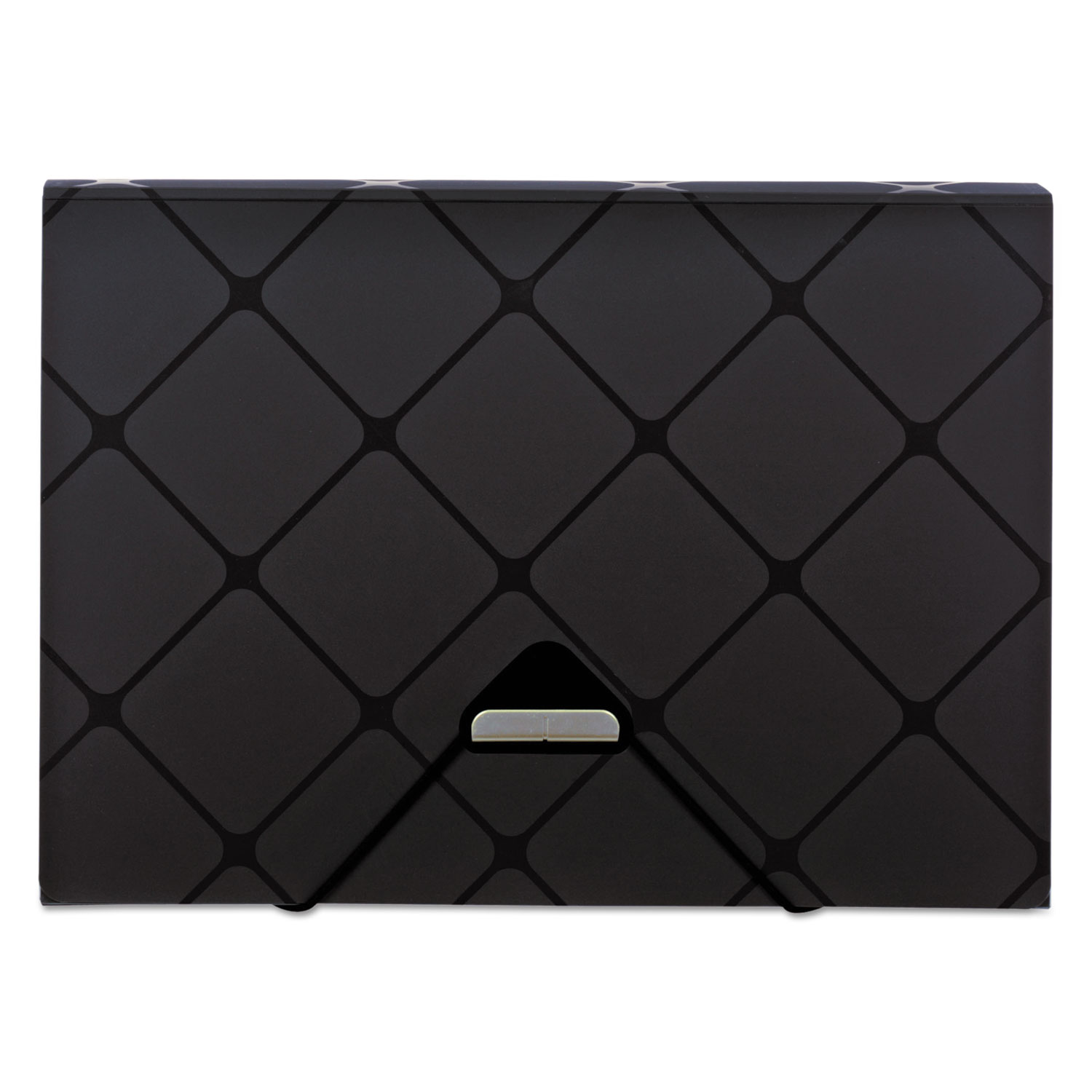 Locate, organize and protect documents with this durable expanding file. Polypropylene construction is water- and tear-resistant. Full cover flap and unique elastic closure keeps contents secure. Pocket/Wallet Type: Files/Papers; Size: Letter; Overall Expansion: 1.5"; Closure Type: Elastic Cord.