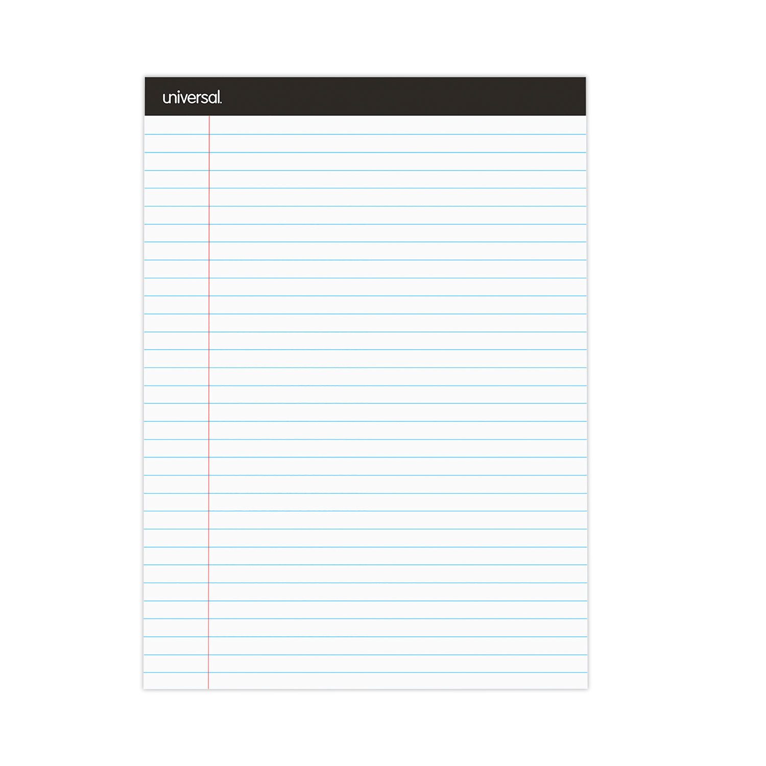 Heavyweight bright white paper with red margin rule is perforated for easy removal. Tasteful black head strip provides a professional appearance. Sturdy heavy-duty back offers support while writing away from a desk.