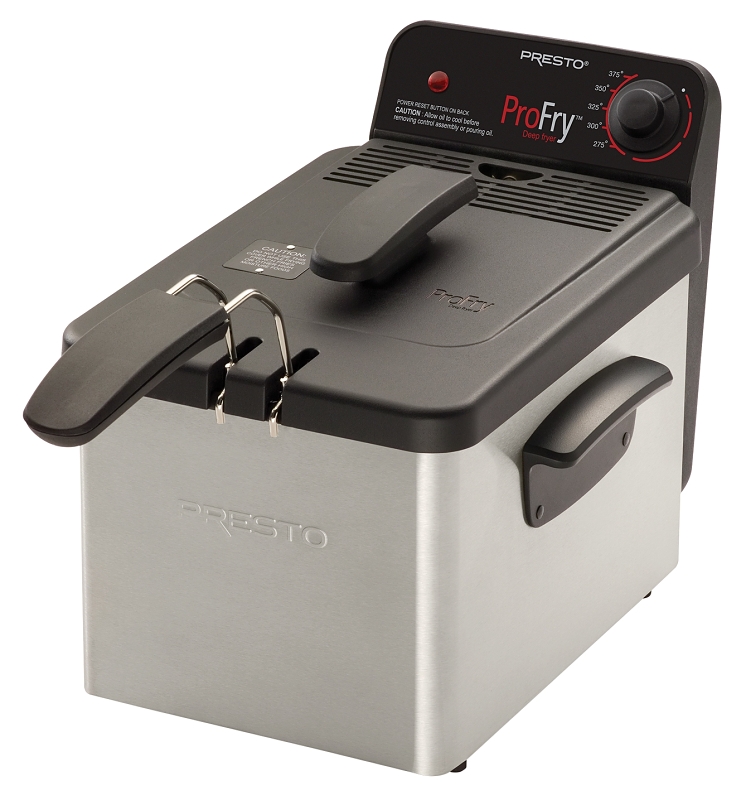 Presto ProFry Electric Deep Fryer, 120 VAC, 1800 W, 8 Cup Food, 2.8 L Oil Capacity, Adjustable Thermostat Control, Stainless Steel, Dimensions: 9.75 in L x 13.87 in W x 9.93 in H