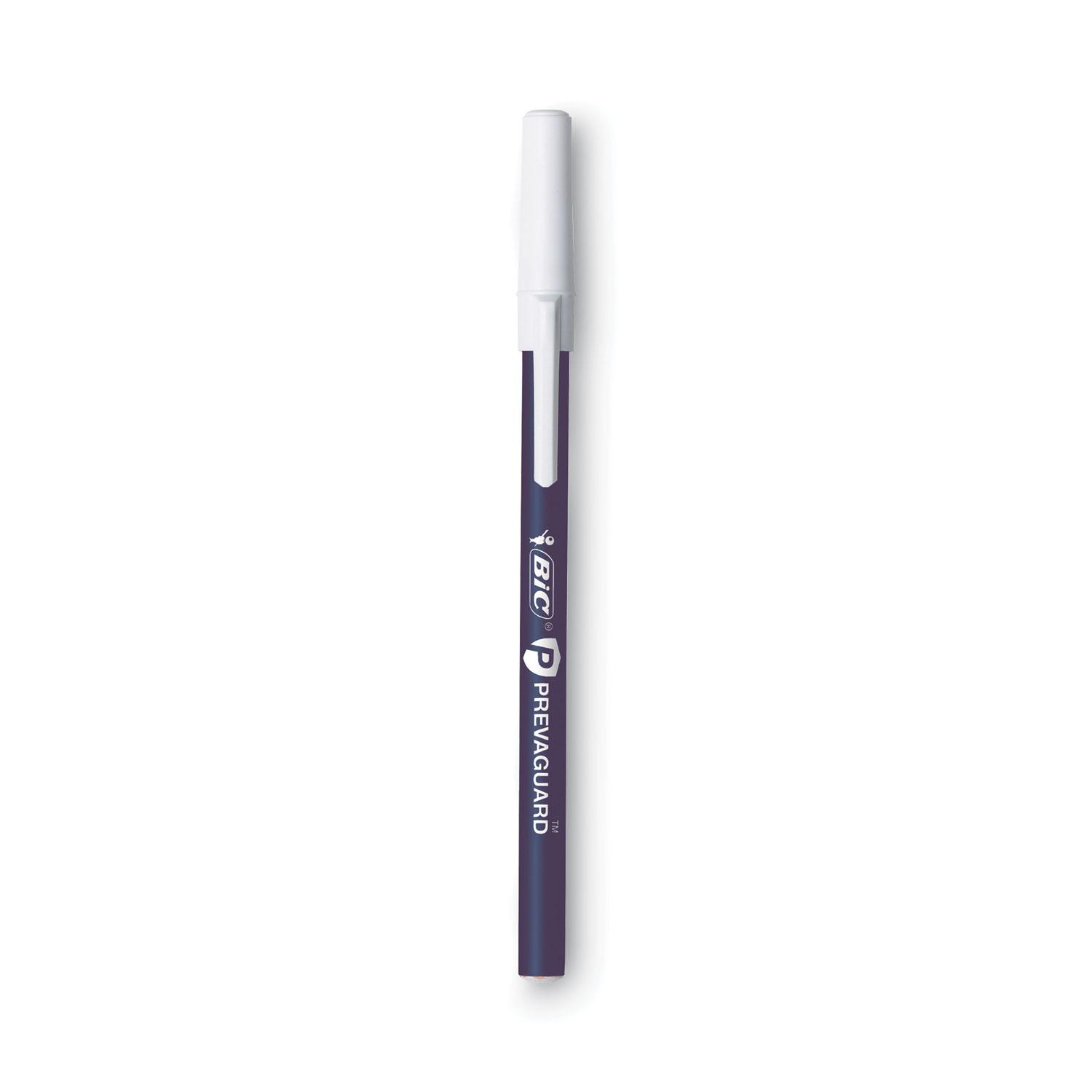 BICPrevaguardRound Stic ballpoint pen contains an antimicrobial agent incorporated into the plastic that protects the pen itself by suppressing the growth of bacteria, algae, fungus, and mildew. These products protect the pens themselves and do not protect users or others from disease-causing bacteria, viruses, or germs. The antimicrobial agent should last the lifetime of the pen's plastic unless the plastic is destroyed.Along with the antimicrobial agent on the pen, the Round Stic pen is the BIC product you know and love. The BIC Round Stic pen writes 90% longer than Papermate InkJoy ST100, giving you great value for your money. This pen also featuresa medium 1 mm ballpointthatdelivers smooth writing to create vivid, highly visible lines ideal for note-taking, drafting, doodling, and other writing activities. Pen Sub-Brand & Product Family: PrevaGuard; Pen Type: Ballpoint Pen; Pen Style: Stick; Pen Tip Type: Conical.