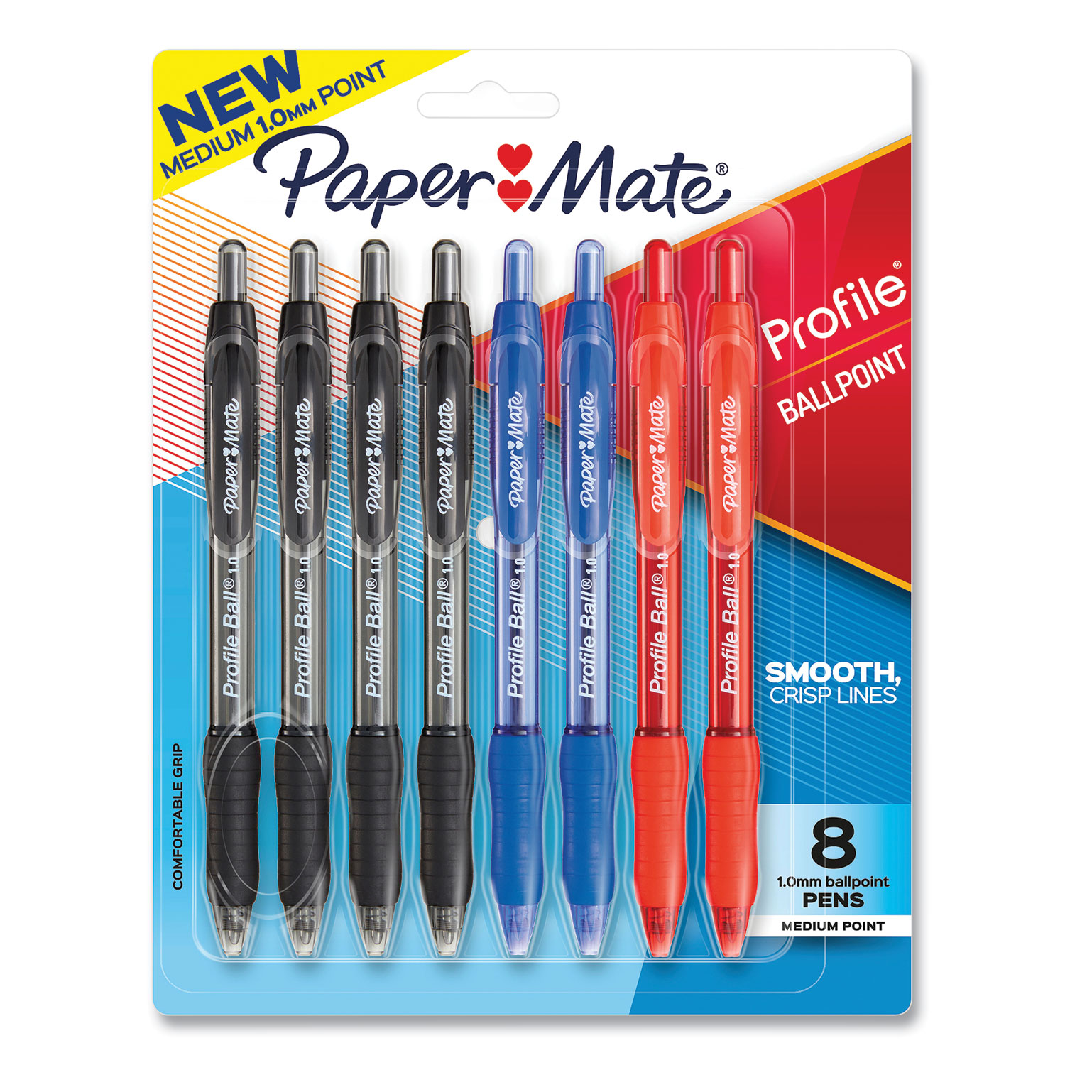 Experience fluid, effortless writing with the Paper Mate Profile Retractable Ballpoint Pen. The bold ink dries quickly to help reduce smudges for tidy, clean writing, while the click-advance retractable tip protects pockets and purses. With its smooth-flowing ink and soft contoured grip, this pen keeps you comfortable during extended writing sessions. Pen Sub-Brand & Product Family: Profile; Pen Type: Ballpoint Pen; Pen Style: Retractable; Pen Tip Type: Conical.