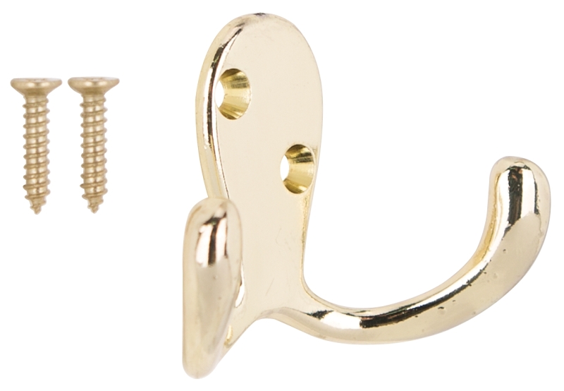 ProSource 23263BBB3L-PS Coat and Hat Hook, 22 lb, 2-Hook, 7/8 in Opening, Zinc, Polished Brass