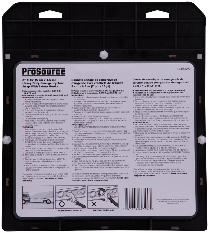 ProSource FH64061 Emergency Tow Strap, 10,000 lb, 2 in W, 15 ft L, Hook End, Polyester Webbing, Stee