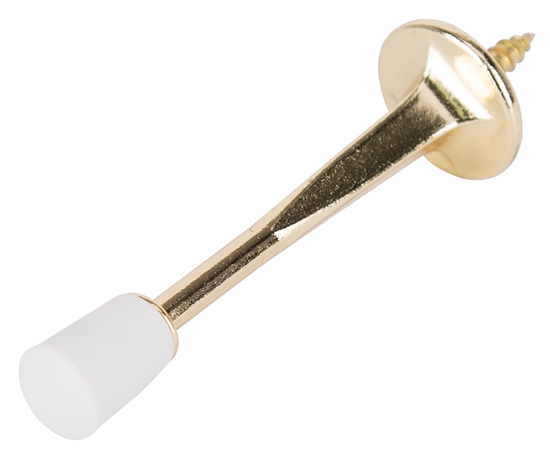 The polished brass solid doorstop is a simple way to help prevent any damage to walls and objects behind the door. The doorstop features solid material and a long projection.