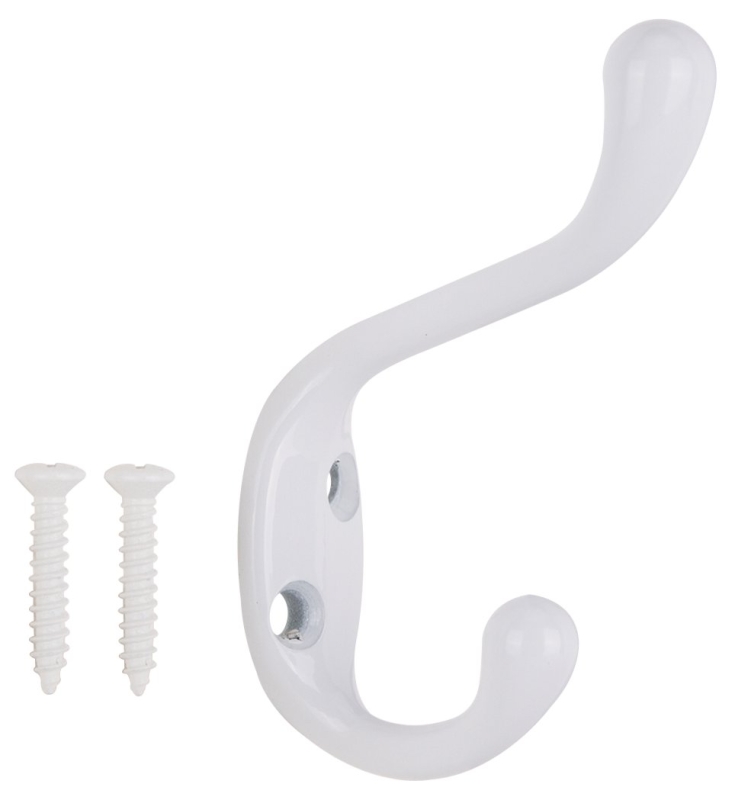 ProSource H6721007W-PS Coat and Hat Hook, 22 lb, 2-Hook, 1-1/64 in Opening, Zinc