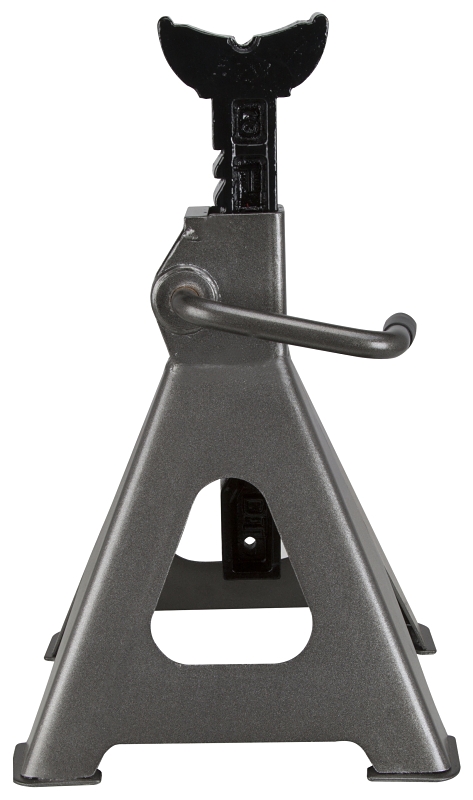 Ductile iron saddle and pawl. Positive lock safety release handle. Wide, heavy-duty base with welded corners for greater stability. Lever ratcheting mechanism for height adjustment.