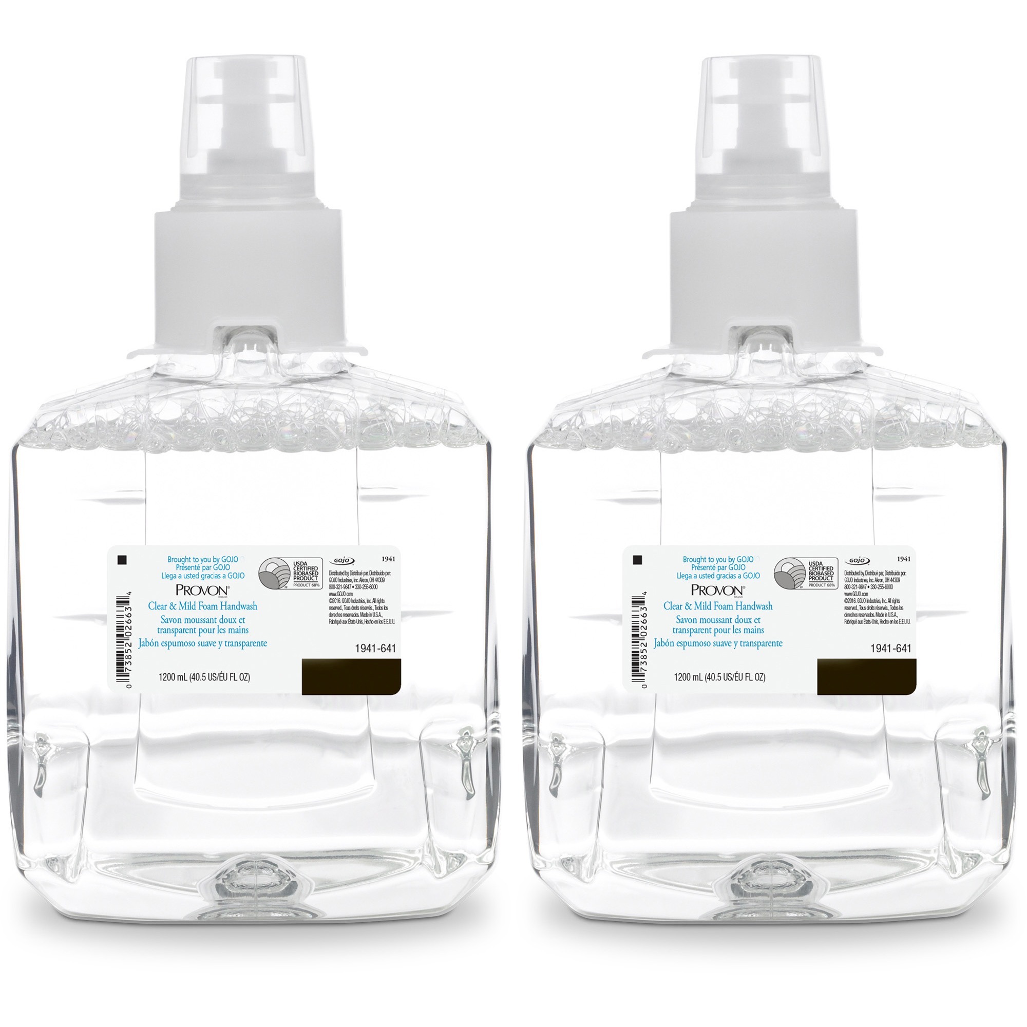 Provon LTX-12 Refill Clear & Mild Foam Handwash - 40.6 fl oz (1200 mL) - Pump Bottle Dispenser - Kill Germs - Skin, Hand - Clear - Rich Lather, Fragrance-free, Dye-free - 2 / Carton| Spa-inspired, green certified, foam hand soap offers luxurious foam lather in a fragrance-free and dye-free formulation that is enriched with moisturizers and skin conditioners. USDA certified bio-based formulation is EcoLogo certified so it delights users while supporting a healthy environment. Handwash is designed for healthcare settings. Crystal clarity of this PROVON LTX-12 refill offers visual appeal and allows easier monitoring of fill level. Sanitary Sealed refill helps lock out germs. Durable, recyclable PET bottle uses 30 percent less material than standard rigid HDPE. Patent-pending, Controlled Collapse technology keeps bottle shape longer while emptying. A fresh dispensing valve comes with each refill. Removable pump promotes easier recycling.Spa-inspired, green certified, foam hand soap offers luxurious foam lather in a fragrance-free and dye-free formulation that is enriched with moisturizers and skin conditioners. USDA certified bio-based formulation is EcoLogo certified so it delights users while supporting a healthy environment. Handwash is designed for healthcare settings. Crystal clarity of this PROVON LTX-12 refill offers visual appeal and allows easier monitoring of fill level. Sanitary Sealed refill helps lock out germs. Durable, recyclable PET bottle uses 30 percent less material than standard rigid HDPE. Patent-pending, Controlled Collapse technology keeps bottle shape longer while emptying. A fresh dispensing valve comes with each refill. Removable pump promotes easier recycling.