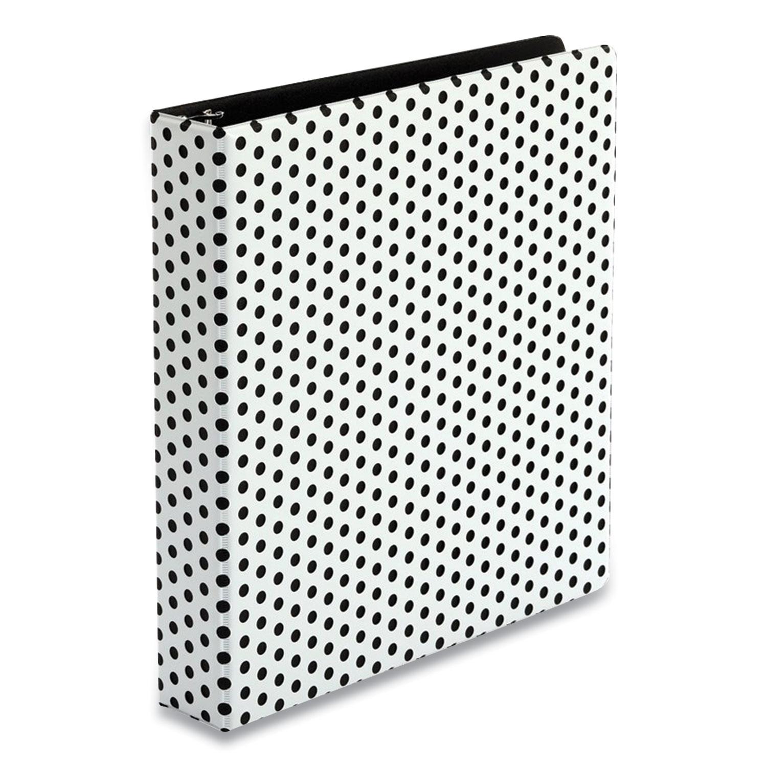 Underlying primary colors pop out to add a playful twist to an organization essential. Cover overlay's laser-cut pattern makes a bold statement while delivering a nostalgic Gen X, DIY effect. Round-ring design and quality metal mechanism ensure reliable performance. Pop color matches interior color. Binder Type: Ring; Binder Style: Non-View; Binder Size Capacity: 1.5"; Binder Sheet Capacity: 350.