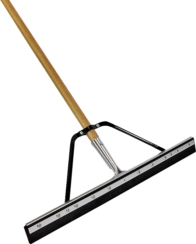 Quickie Floor Squeegee, Aluminum Frame, Flat Blade, 24 in W Blade, Rubber Blade, Tapered Handle, Wood Handle, Brown/Gray, 60 in Handle