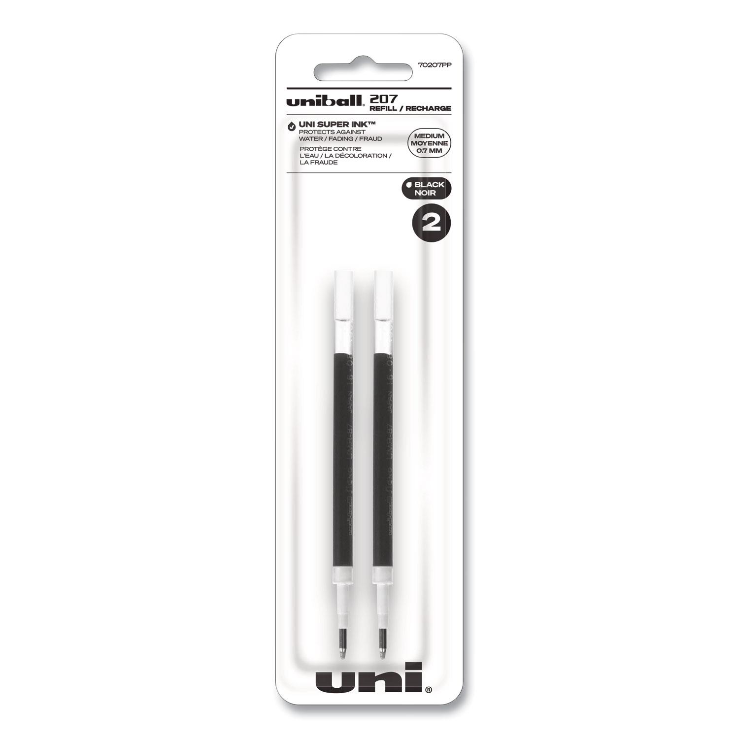 Never run out of ink with 207 Gel Pen Refills from uni-ball featuring a 0.7 mm medium point with a stainless steel tip that resists bending and breaking. Even-flowing, pigment-based gel ink delivers a smooth writing experience for intense, vibrant lines, ensuring that every mark is brilliantly communicated. Use uni-ball gel ink for everyday writing tasks, check signing and all of your important signatures, trusting its quick-drying uni Super Ink. Innovative uni Super Ink technology effectively entraps the gel ink into the paper, producing fraud, fade and water-resistant documents that resist check washing or bleaching. The 0.7 mm medium point strikes the perfect balance between bold and detailed lines.