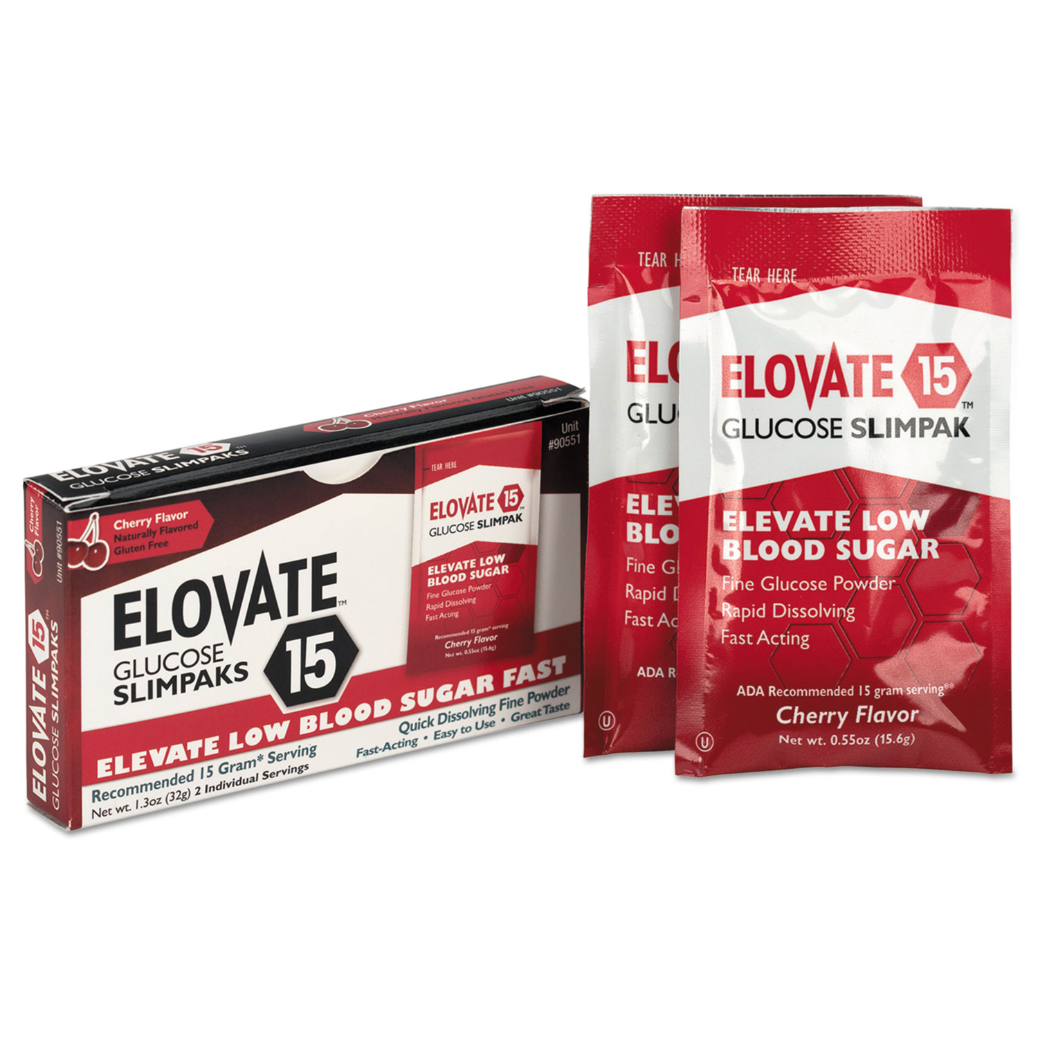 Convenient refills contain individual items for restocking first aid kits. For general use around office or home. Contains: Elovate Glucose Slimpak Refill, 0.55oz Packets, 2/Box; Number of Pieces: 2; For Use With: SmartCompliance First Aid Cabinets.