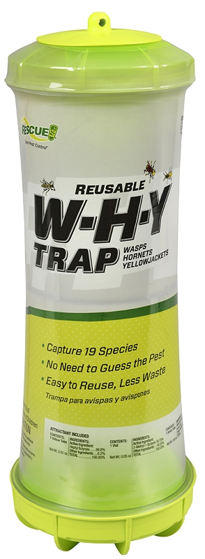 The RESCUE! WHY trap catches 5 species of paper wasps, bald-faced hornets and European hornets and 12 species of yellow jackets.