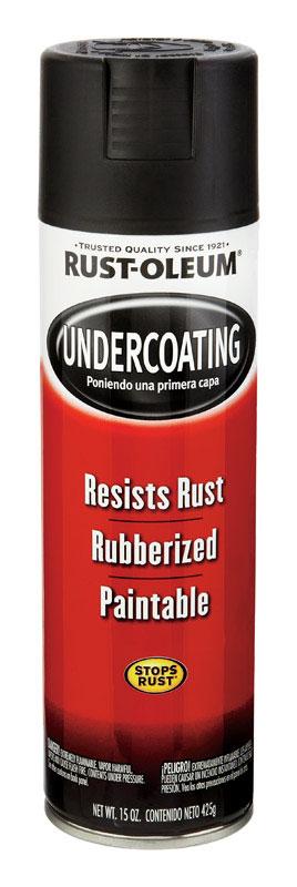 RUST-OLEUM Rubberized undercoating is an easy-to-use black rubberized protective coating. It provides corrosion protection from water, salt and other chemicals. Its helps deaden sound and provides a barrier against rust on cars, trucks, trailers and other recreational vehicles. Use on bare or primed metal on the underbody of cars, trucks, trailers and other recreational vehicles. Undercoating features an advanced spray system that allows you to spray at any angle, even upside down for those hard-to-reach areas. A comfort spray tip with a wider finger pad reduces fatigue caused by continuous spraying.