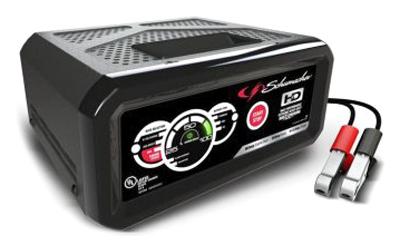 Schumacher Battery Charger/Engine Starter, Input Voltage: 120 V, Output Voltage: 12 V, Input Current Rating: 6 A Continuous, 19.5 A Intermittent, Battery Type: AGM, Dimensions: 5.5 x 11.13 x 11.38 in