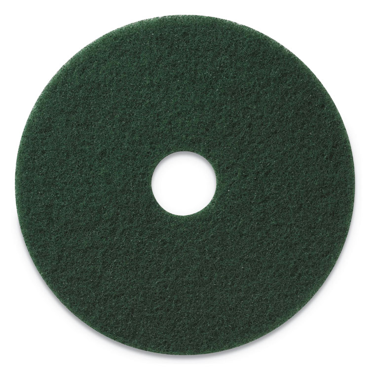 Use with a cleaning solution to scrub hard floor surfaces. This pad will aggressively remove dirt and scuff marks from heavily soiled floors. It is also designed for light stripping. Application: Scrubbing; Diameter: 13"; Color(s): Green; Color Family: Green.