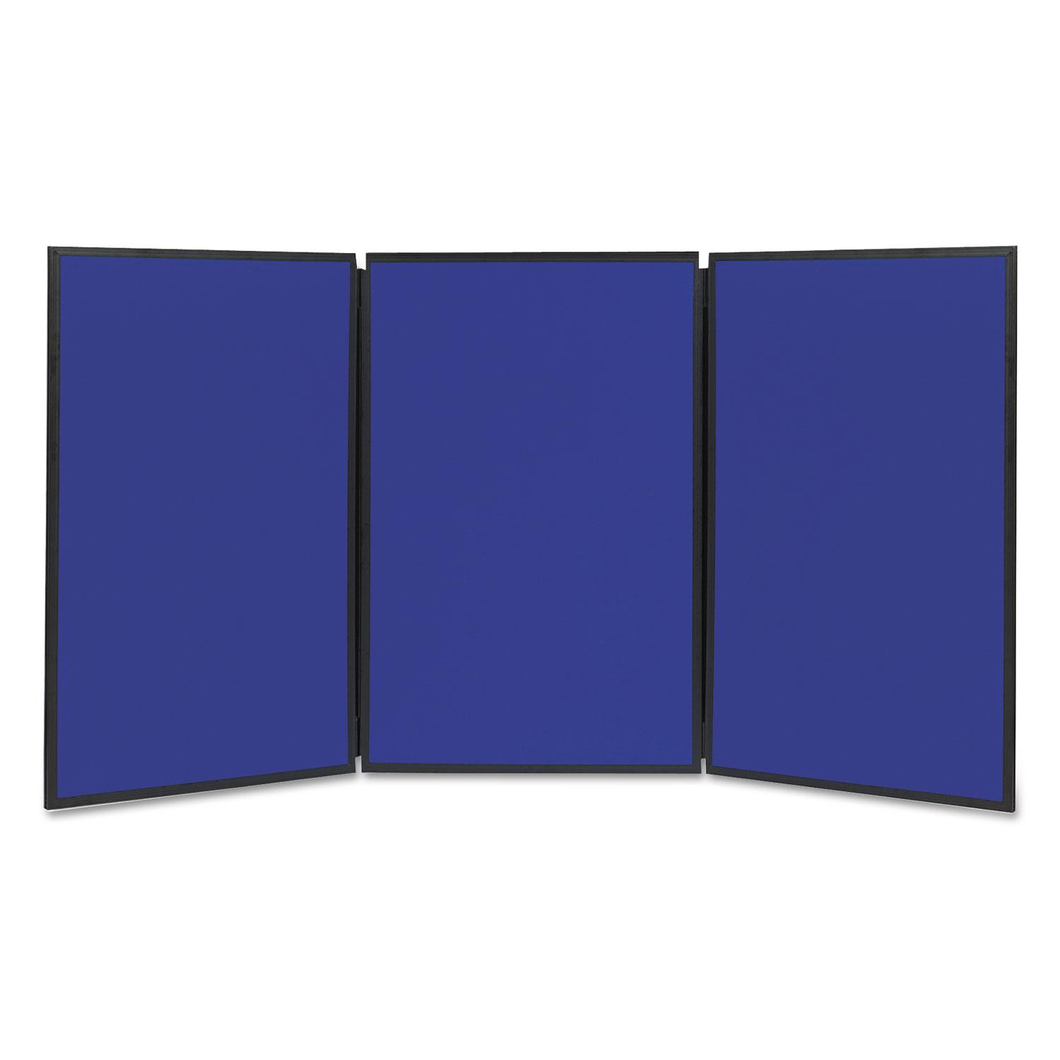 Lightweight and resilient, this panel display system allows you to quickly set up a dynamic, visual exhibit. Panels are double-sided to provide a larger display surface and can be combined with other Quartet display boards. Three-Panel Display System. Board Type: Presentation; Board Width: 72"; Board Height: 36"; Surface Material: Fabric.