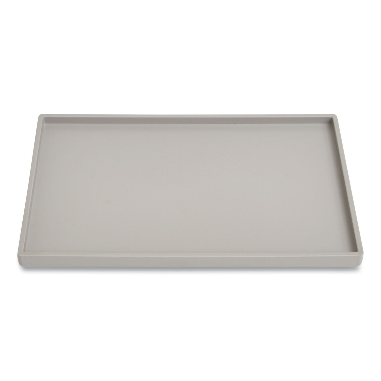Create a customized desktop setup that inspires your best work. Slim, small stacking design requires very little space and is ideal for consolidating mail, memo-pads and small office supplies. Neutral hues and a simple silhouette perfectly suit modern office environments. Integrates easily with other TRU RED desk accessories. Number of Compartments: 1; For File Size: #6 1/4 to #16 Business/Trade Envelopes; Load Orientation: Front; Top; Color(s): Gray.