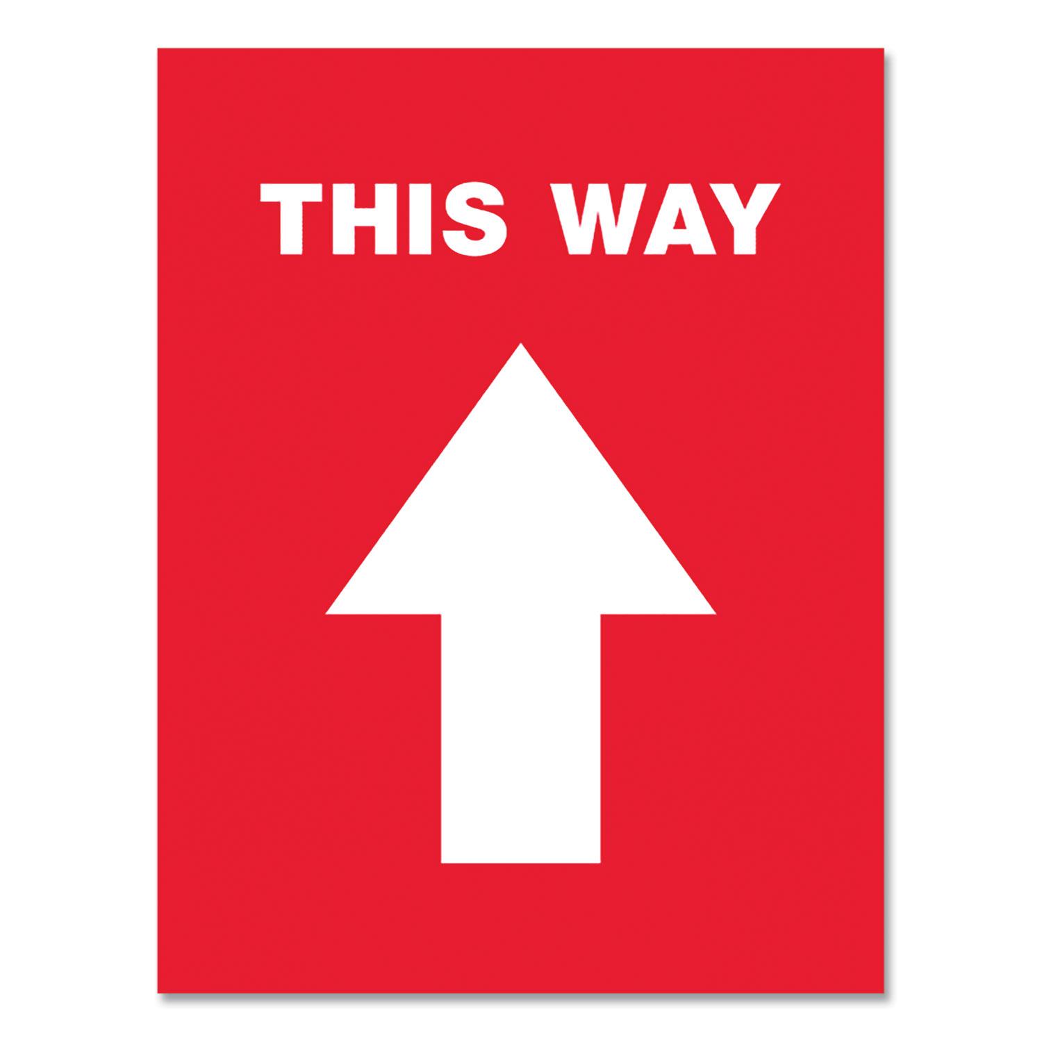 Help your customers keep a safe distance with this social distancing floor decal. Featuring a preprinted message on a vinyl surface with a semigloss finish, it is an intuitive and easy way to direct foot traffic. Designed to withstand everyday wear and tear, this anti-slip and water-resistant floor decal is also scuff-resistant and UV-coated for additional durability. Able to stick and stay but also peels away cleanly, it is removable and easy to reposition for the right spacing and placement. Perfect for retail stores, restaurants, hair salons, banks, airports, and more. Size: 8.5 x 11; Message(s): This Way; Material(s): Vinyl; Orientation: Vertical.
