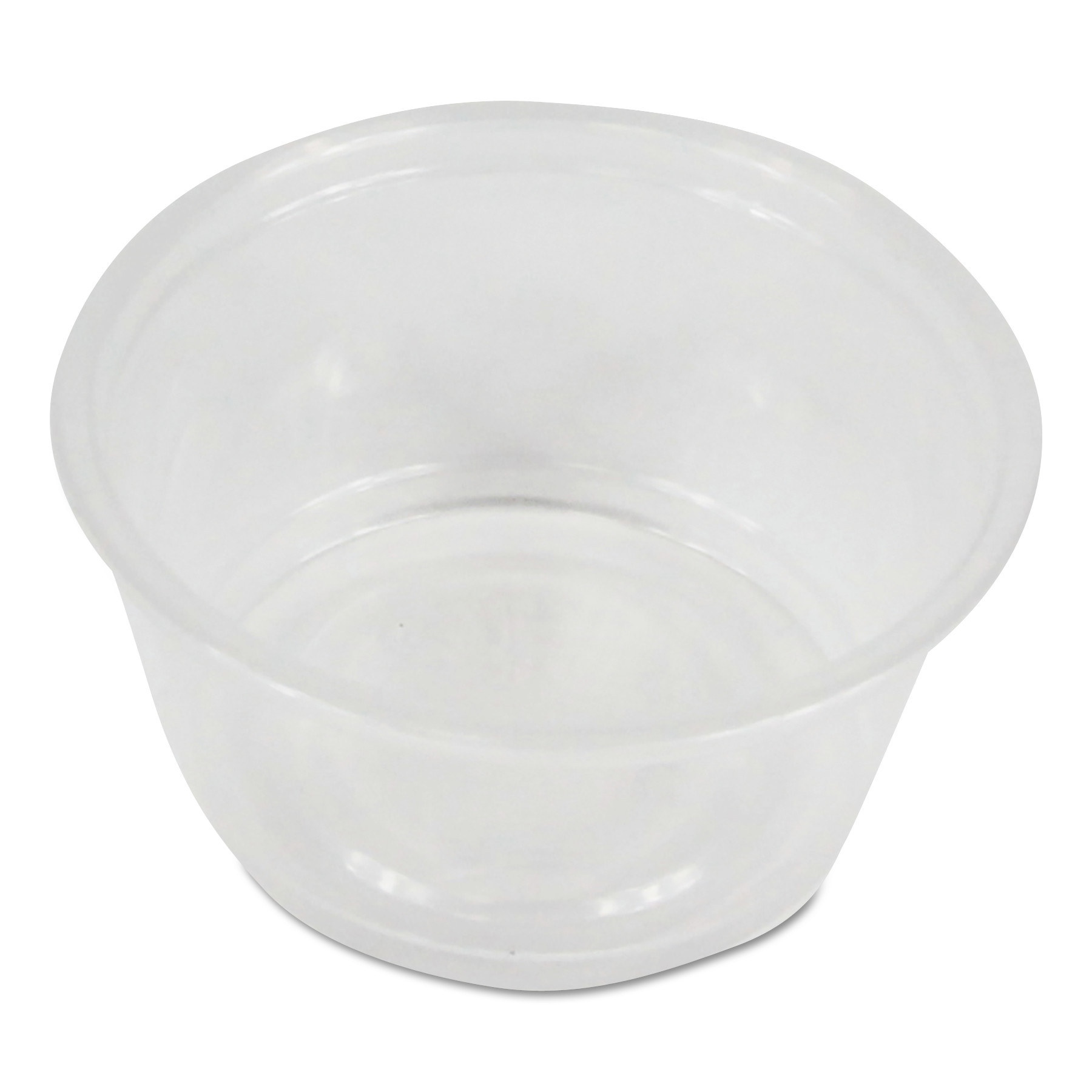 Whether looking for portion-control or the perfect to-go option for your signature sauce, these souffle cups provide a sturdy and high-quality option that's economical as well. They are an excellent choice for condiments and samples. Cup Type: Portion; Capacity (Volume): 2 oz; Material(s): Polypropylene; Color(s): Clear.