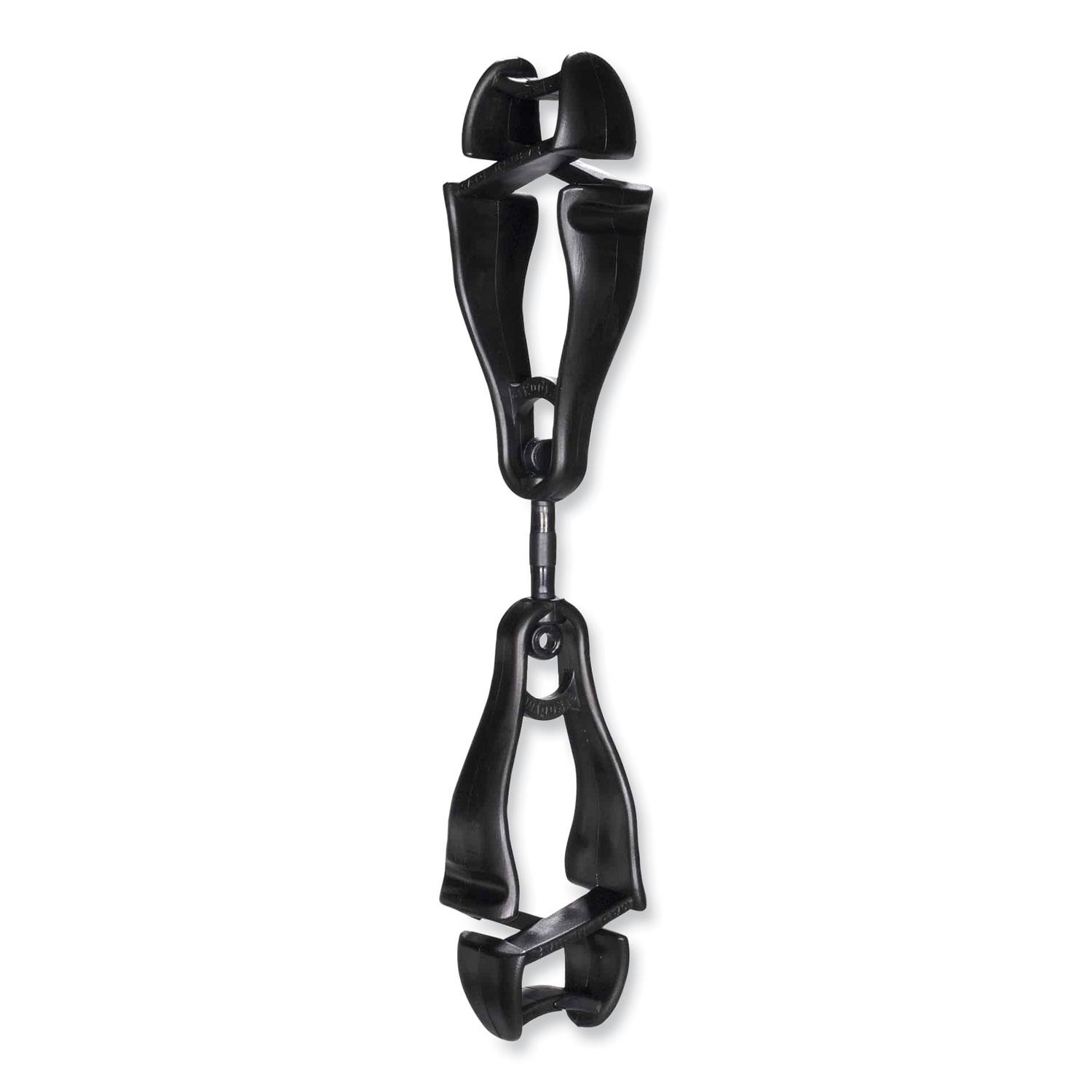 The Squids 3420 Dual Clip Swivel Glove Clip Holder securely grabs onto your face masks, gloves, ice traction, cooling towels, keys and whatever else always seems to mysteriously disappear, so you can keep what you need at the ready. No more trying to stuff gloves in your pockets only to have one fall out and get lost. This glove holder features a patent-pending design with a swiveling link that allows it to rotate freely without getting bound up. The strong gripping jaws can hold on to gloves, hats, keys, towels and other PPE that are too bulky to fit in pockets. Ideal for those who work in construction, warehouses, manufacturing, food processing plants, janitorial and even retail environments. Keeps gloves and other gear handy for off-the-clock use, too, like hunting, hiking, home projects and more. The link design allows one end of the gear grabber to safely separate in case of emergency. Type: Glove Grabber; Material(s): Acetal Copolymer; Thermoplastic Polyurethane; Color(s): Black; Width: 1".