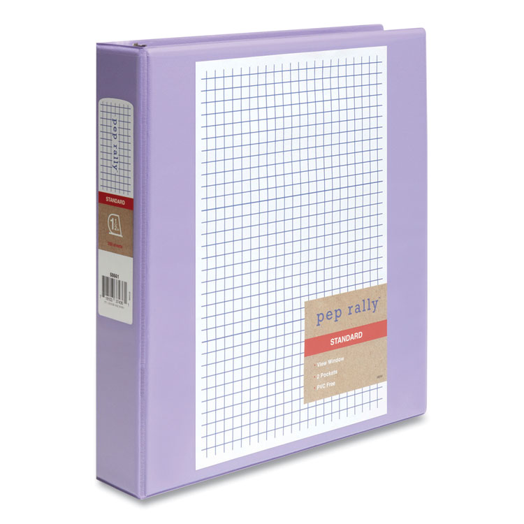 This view binder is the perfect way to store your papers in a trendy and functional way. This binder comes with three D-rings that allow papers to lay flat for writing on without the need to remove pages from the binder, complete with interior pocket for additional storage. Binder Type: Ring; Binder Style: View; Binder Size Capacity: 1.5; Binder Sheet Capacity: 350.