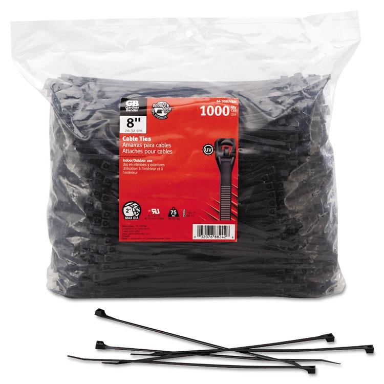 Patented DoubleLock design features teeth on both sides ensures strong, reliable performance. Temperature resistant between -40F and 185F. Durable nylon 6-6 material. Cable Management Type: Tie; Closure: DoubleLock; Color(s): UV Black; Length: 8".