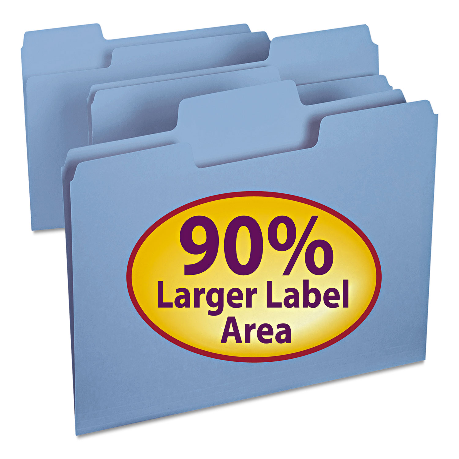 Designed with tabs that have more labeling area for improved labeling. Labels are easier to see using larger text or more lines of text can be visible. 11 pt. stock. File Folder Size Type: Letter; File Folder Color: Blue; Color Family: Blue; File Folder Material: 11-pt Stock.