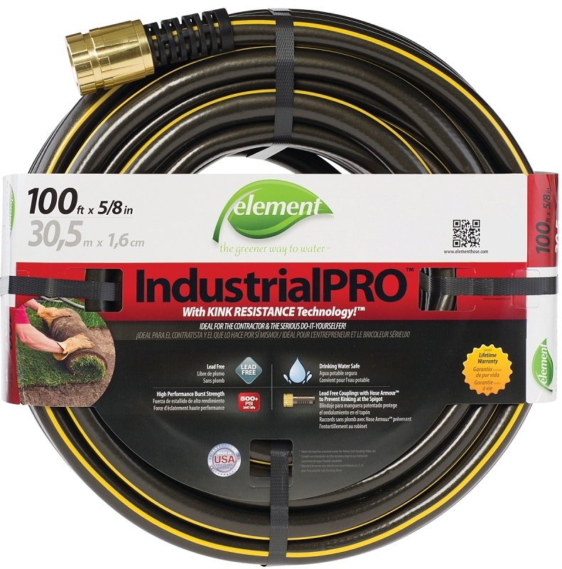 This element commercial-grade 100 ft. Garden hose for sale is the solution for some of your larger tasks at hand. With a burst strength of 500 psi and heavyweight reinforcement at high-pressure areas, you can count on this 100 ft water hose for top results. As a leading brand, element delivers the quality you expect and the commercial-grade line is one of their best for durability and kink resistance. Year in and year out, you can rely on the versatility of this water hose without any sacrifice in performance. The ability to withstand the weight of heavy equipment thanks to the easily gripped crush-proof XL couplings (eliminating the need for a wrench) is one of the benchmarks for a top product like the element commercial-grade 100 ft long water hose. And don't forget about our patented hose armor, which handily prevents kinking at the spigot.