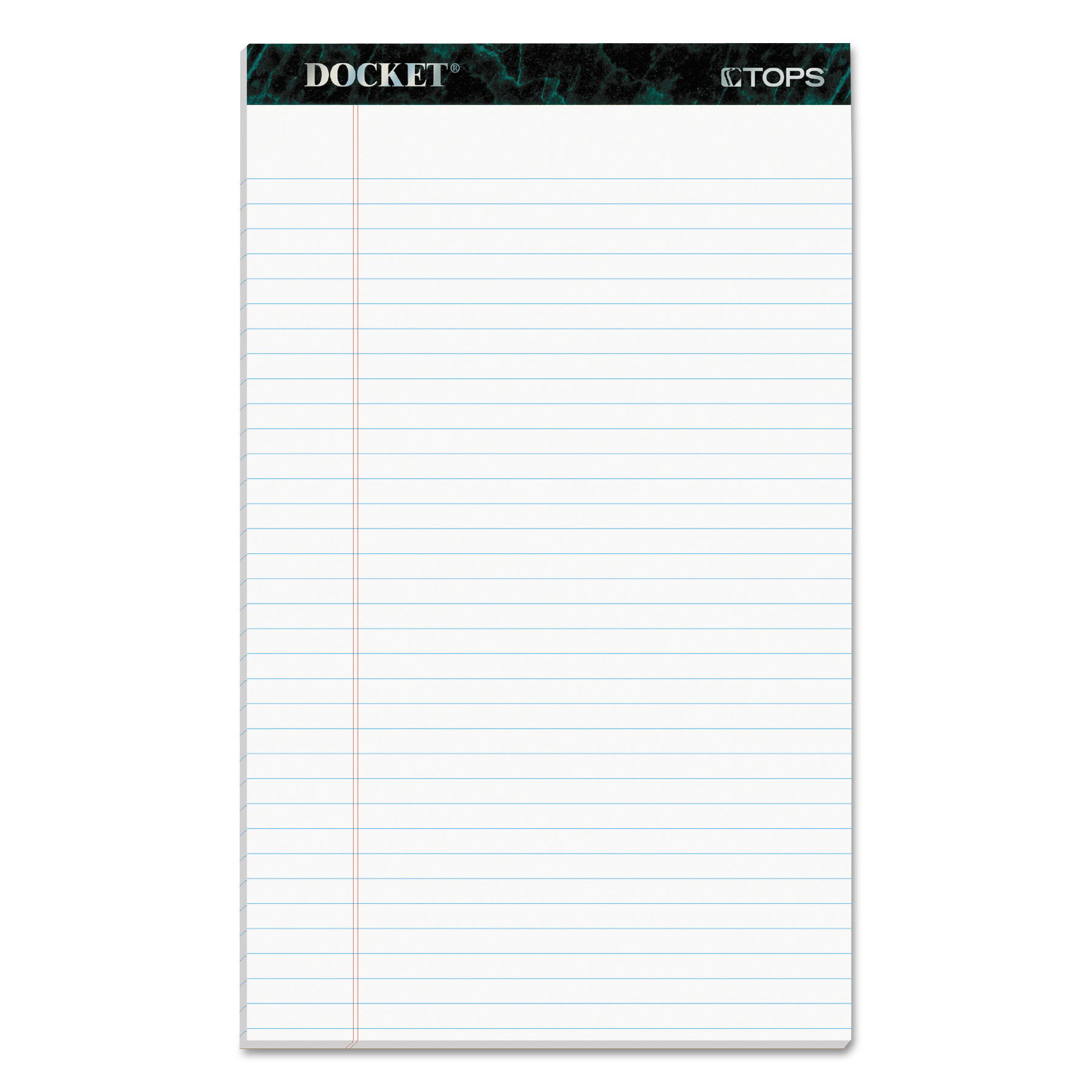 TOPS Docket Letr - Trim Legal Ruled White Legal Pads - Legal - 50 Sheets - Double Stitched - 0.34" Ruled - 16 lb Basis Weight - 8 1/2" x 14" - White Paper - Marble Green Binder - Perforated, Hard Cover, Resist Bleed-through - 12 / Pack| Writing pads feature Letr-Trim perforation at the top for a clean tear-out every time. Binding at the top is double-stitched for added strength. 60 point, rigid chipboard backer provides writing support and durability. Each pad contains 50 stitched sheets of heavyweight, 15 lb. paper that resists bleed-through. Each sheet is legal/wide-ruled with 11/32" line spacings and a 1-1/4" left margin.Writing pads feature Letr-Trim perforation at the top for a clean tear-out every time. Binding at the top is double-stitched for added strength. 60 point, rigid chipboard backer provides writing support and durability. Each pad contains 50 stitched sheets of heavyweight, 15 lb. paper that resists bleed-through. Each sheet is legal/wide-ruled with 11/32" line spacings and a 1-1/4" left margin.