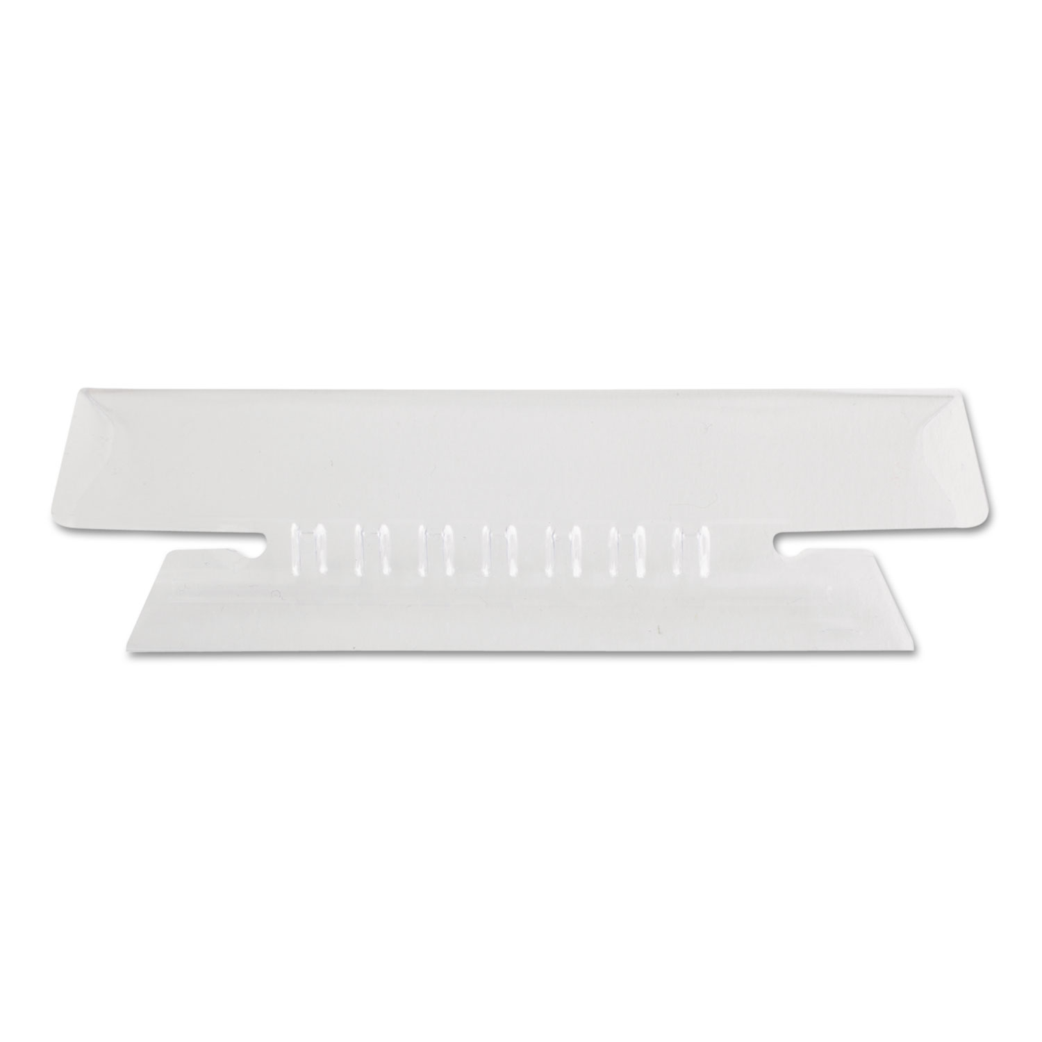 Add a colorful touch to your organization with these transparent tabs that are color-matched to Pendaflex hanging file folders. Blank white inserts are included that hold up to three lines of type. Pliable plastic design makes insertion fast and simple. Stagger the position of tabs to keep each file heading in full view!