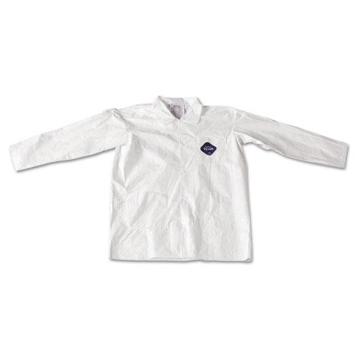 Labcoat offers front snap closures for easy donning and doffing|Provides enhanced frontal protection|Laydown collar|Open wrists|Two front pockets for holding writing instruments, small tools or parts