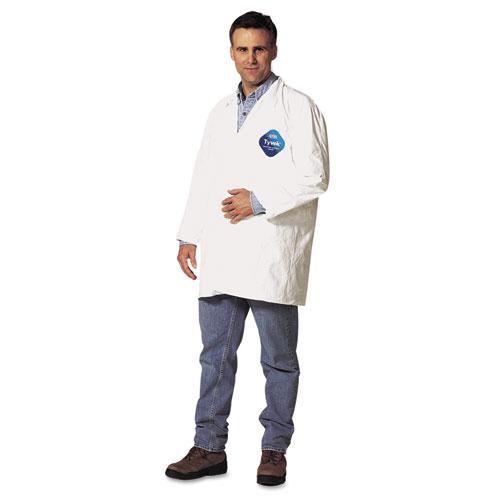 Labcoat offers front snap closures for easy donning and doffing|Provides enhanced frontal protection|Laydown collar|Open wrists|Two front pockets for holding writing instruments, small tools or parts