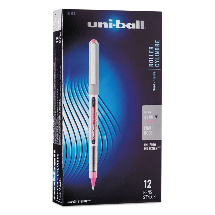 Uni-Ball Vision Rollerball Pens, 0.7mm, Nonrefillable, Passion Pink