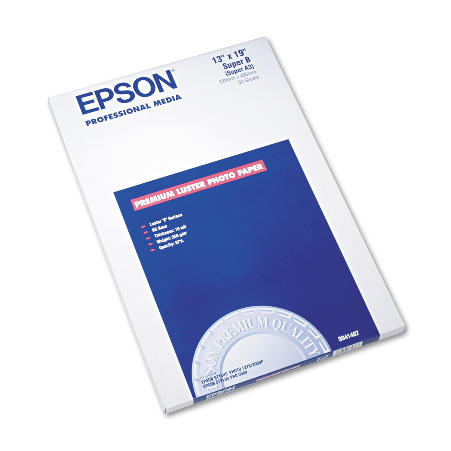 The same type of luster paper traditionally used by wedding, portrait and fine-art photographers for their work. Accurate colors and rich, bold blacks for vivid, lifelike images. Instant drying. Sheet/Roll Size: 13 x 19; Paper/Media Thickness (mil): 10 mil; Paper/Media Color(s): White; Color Family: White.