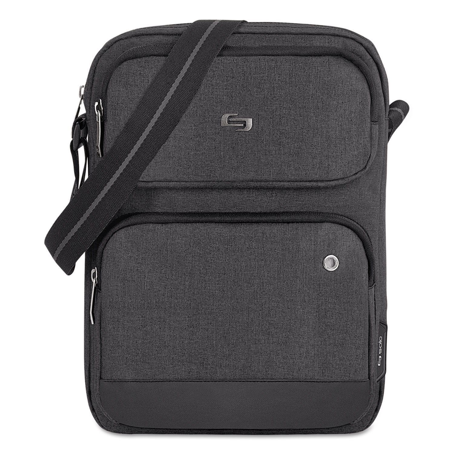 Fully padded 11" tablet compartment. Scratch-resistant liner. Front zippered pocket. Front zip-down organizer section. Adjustable shoulder strap. For Use With: 8.5" to 11" Tablets; Accessory Type: Tablet Case; Material(s): Polyester; Color(s): Gray.
