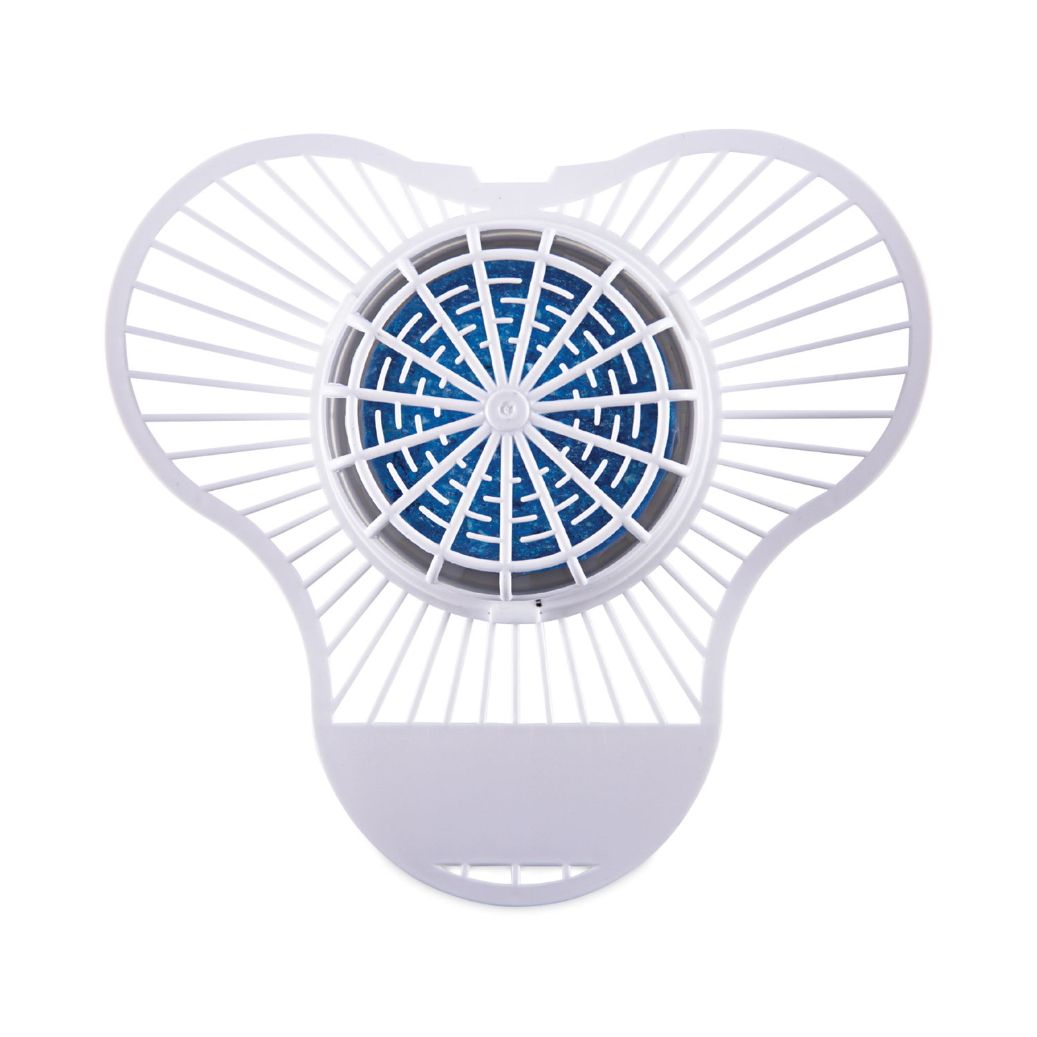 Deodorizes, cleans and prevents scale buildup. Every flush tints the water blue, while healthful bacteria eliminate odors and maintain drain lines. Screen traps debris. Lasts up to 1,500 flushes. Deodorizer Type: Urinal Block; Scent: Apple; Capacity (Weight): 3.25 oz; Color(s): Blue; White.