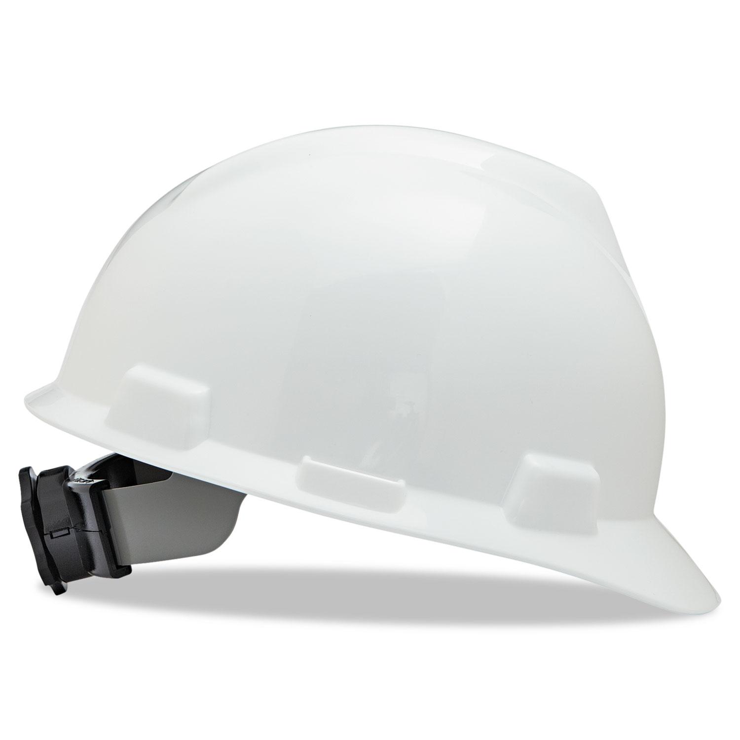 Premium hard hat provides comfortable protection. Polyethylene shell with ratchet suspension ensures excellent shock absorption while keeping weight down. Self-adjusting crown straps simplify sizing. Fas-Trac III Suspension: Standard Size 6.5 to 8Slotted. Style: Cap; Material(s): Polyethylene; Adjusting Method: Fas-Trac III Ratchet; Suspension: Ratchet.