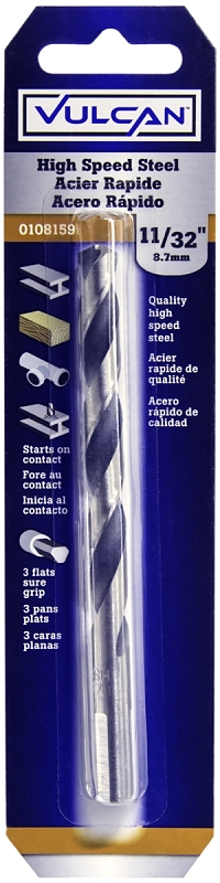 Vulcan 232051OR Jobber Drill Bit, 11/32 in Dia, 4-3/4 in OAL, 3-Flat Shank
