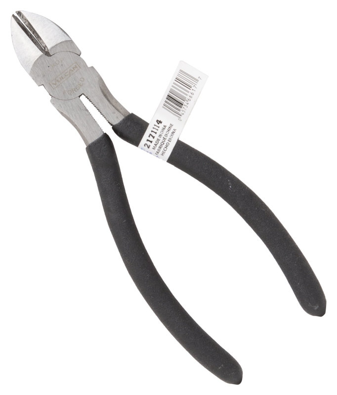 This Vulcan diagonal cutting plier is made of carbon steel with a polished jaw finish. It has comfortable non-slip grip handle.
