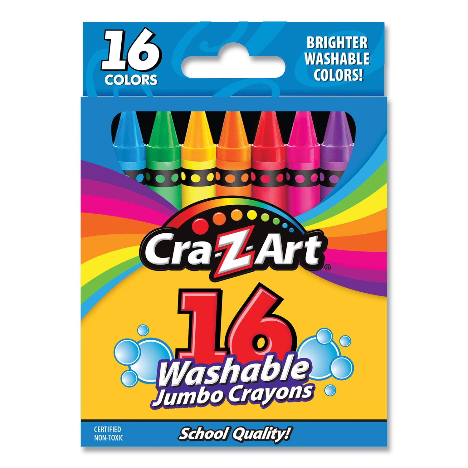When your little Picasso gets a little carried away with color, these 16 washable colors come in super handy for a quick cleanup. The bold, rich colors easily wash away from skin, clothes and surfaces with soap and water. Go ahead, let your fearless artist color outside the lines, in the lines or over lines and express their artistic talent any way they choose. Color on-without worry! Color(s): Assorted; Color Family: Multicolor; Assortment: Black; Blue; Blueberry Jammin; Brown; Bubble Gum Pink; Green; Lemony Lime; Molten Lava; Orange; Red; Snowball; Sun Burst; Tropical Turquoise; Violet; Yellow; Wild Berry; Age Recommendation: Ages 3 and Up.