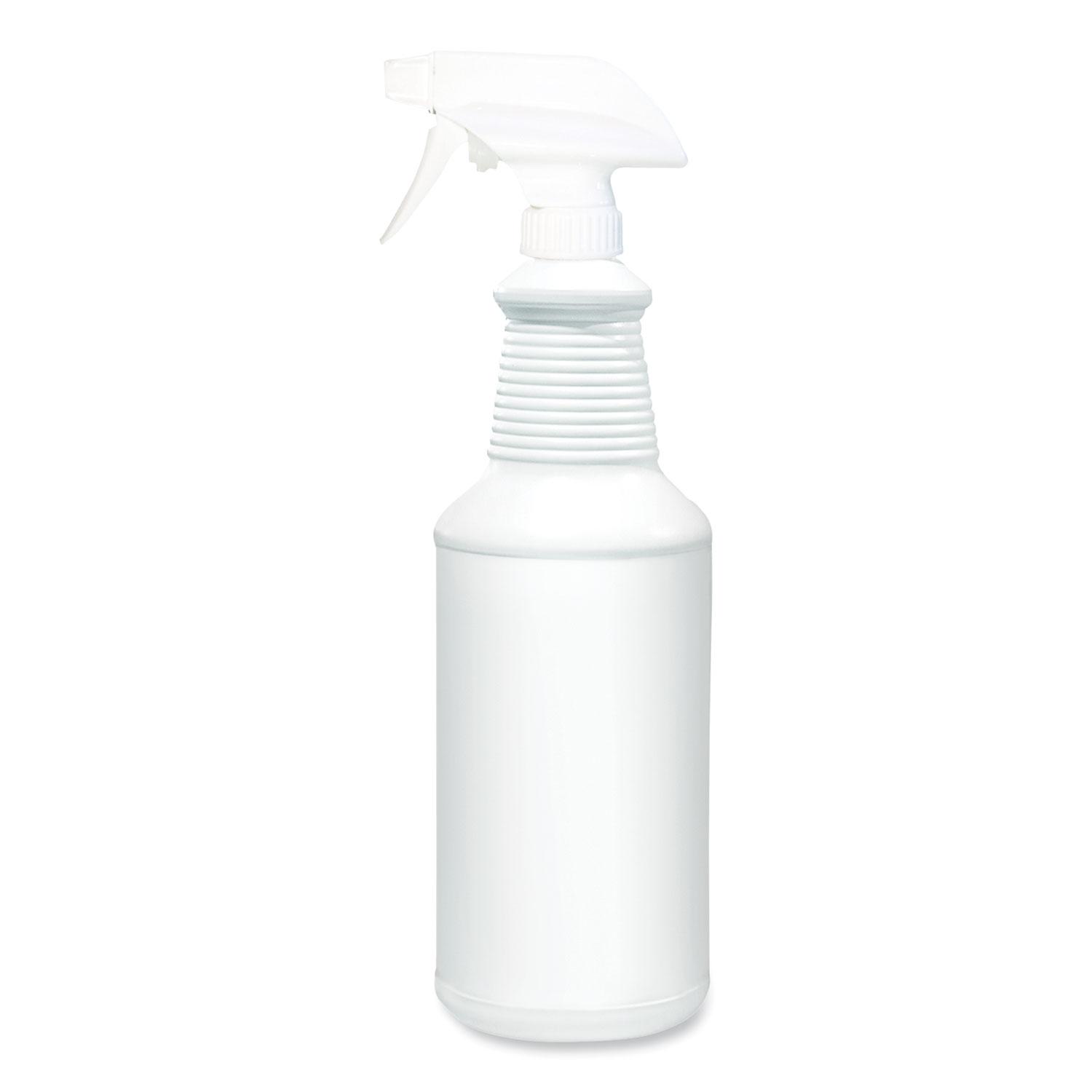 Sturdy, empty plastic spray bottle is great for everyday use. Clearly labeled for "Water Only." Material(s): Plastic; Color(s): White; Capacity (Volume): 32 oz.