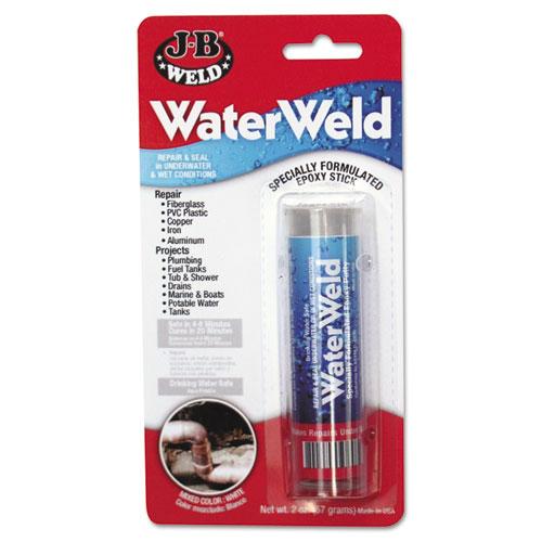 WATERWELD can be applied under water: surfaces to be repaired do not need to be clean and dry|Simply cut off as much of the material as you need, twist and knead with your fingers until color is uniform with no streaks, apply immediately to surface to be repaired|"Mushrooms" through and around holes, grabbing the edges to hold securely, then hardening for a permanent seal||