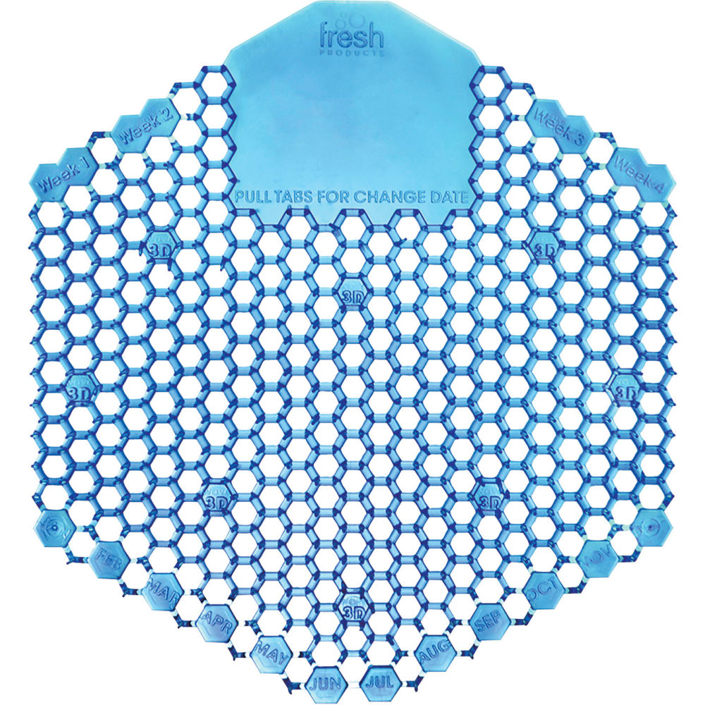 More freshness with ten times more fragrance for 30 days. Eliminates odors, reduces splash back and gradually releases fragrance, reducing cleaning time. Flexible, translucent vinyl screen allows full view of urinal drain to ensure optimal flow while trapping debris. Wave 3D. Deodorizer Type: Urinal Screen; Scent: Cotton Blossom; Color(s): Blue.