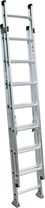 The D1516-2 aluminum extension ladders have a duty rating of 300 lb and have extra heavy-duty I-beam side rails. The base and fly sections separate easily and can be used separately. Guide brackets help to ease operation when raising and lowering the fly section. The exclusive ALFLO rung joint means TWIST-PROOF performance every time. The side rails are extra heavy-duty I-beam rails and the aluminum TRACTION-TRED D-rungs are slip resistant. Rugged, spring-loaded locks operate smoothly. Mar-resistant end caps protect the surface ladder is resting against.