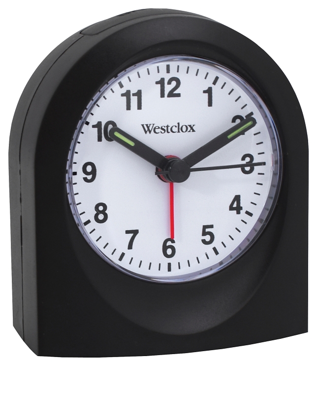 Alarm with snooze. Light on demand. Luminous hands. Uses 1 AA battery (not included).