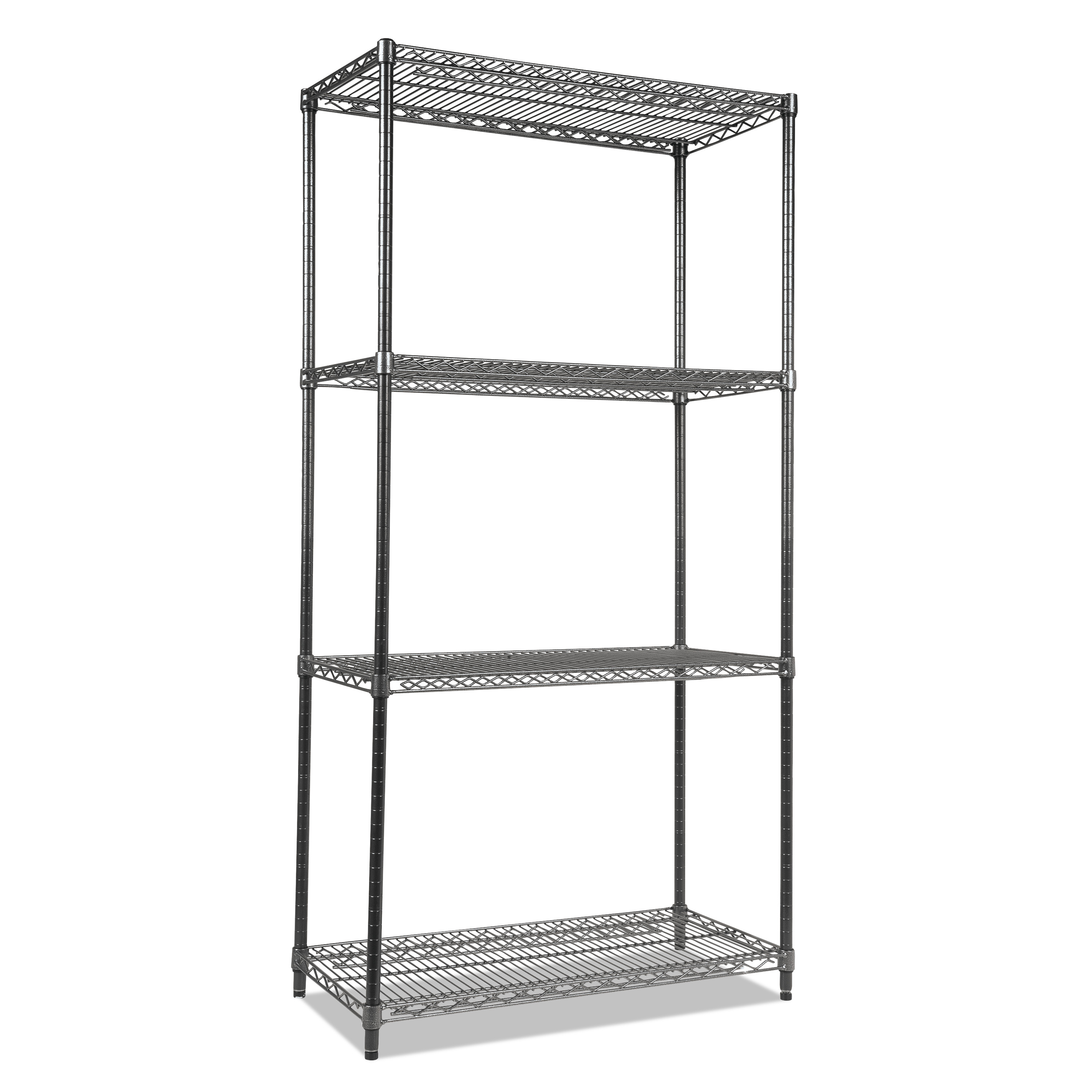 Ideal storage solution for commercial and restaurant use. Black Anthracite finish is National Sanitation Foundation (NSF) certified for wet and dry environments. Open design that allows for air circulation. Snap-together design assembles in minutes. Can be set up as a four-tier single rack or as two two-tier racks to meet specific needs. Up to 1,250 lbs. per shelf (evenly distributed). Color: Black Anthracite; Overall Width: 36"; Overall Depth: 18"; Overall Height: 72".
