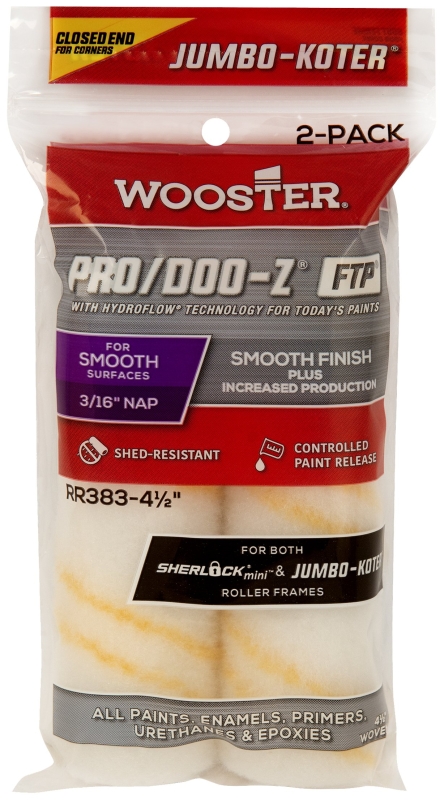 Increase production with closed-end Jumbo-Koter mini-rollers. Utilizing fabric-covered ends, they apply paint onto both surfaces of the corner at the same time, reducing the time typically spent cutting in with a brush.